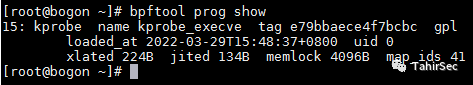 bpftool prog show例如,目前系统已加载了某些kprobes。
