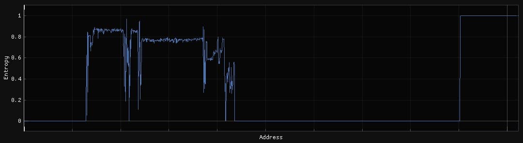 In sections where high entropy values are found, it is due to the use of data compression or encryption algorithms. Compression processes generate the highest entropy values as they attempt to pack as much information as possible per byte, while encryption processes, which seek to maximize the randomness of the result, are usually just below compression. This may not be true for all compression and encryption algorithms.
