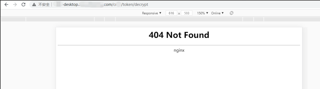 第1点:libs/plugins/jquery.js,加载了JavaScript文件,其路径是:http://xxx-desktop.xxx.com/libs/plugins/jquery.js不过,此处jquery.js完全为前端文件,无任何可利用的信息,于是略过。第2点:html/apply.html?data=,加载了当前目录下一个html文件,路径为:http://xxx-desktop.xxx.com/html/apply.html?data=结果也是一无所获,经典Nginx的404 NOT Found。第3点:cxx/token/decrypt,猜测为接口路径。一番信息收集后无果后,接下来就是展现真正的技术了!虽然上面的3个可用信息都Pass掉了,不过我们还是猜测,在两个路径之前,可能还存在一层Web应用目录亦或是接口目录,随后展开对Web目录的尝试性爆破,选用一些常见的一级目录。http://xxx-desktop.xxx.com/html/http://xxx-desktop.xxx.com/css/http://xxx-desktop.xxx.com/js/