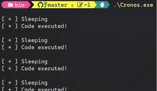 #include "Cronos.h"int main() {int timesToExecute = 1337;int seconds = 10;for (int i = 0; i < timesToExecute; i++) {CronosSleep(seconds);// YOUR CODE HERE!}}