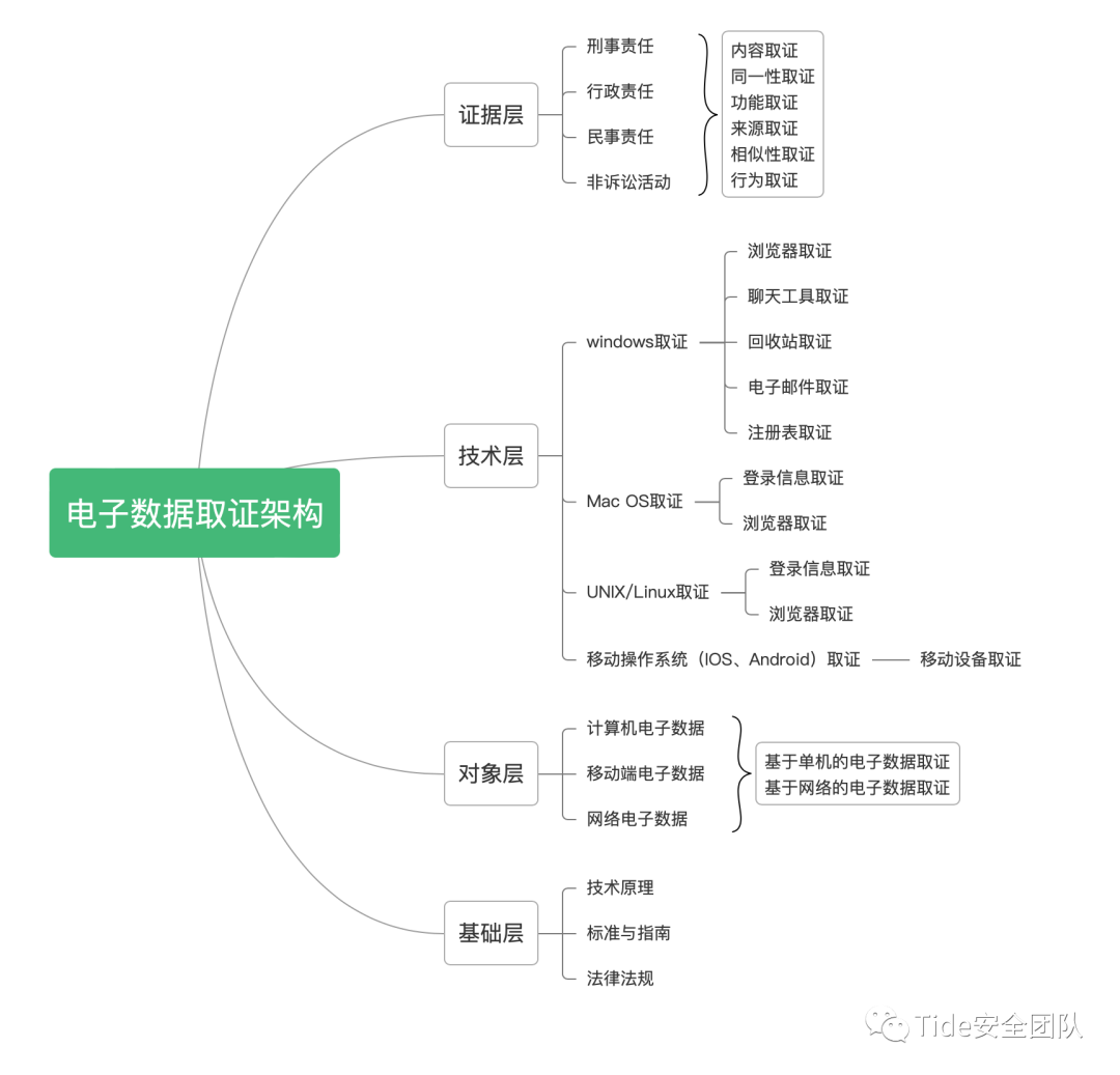 电子取证涉及计算机科学和法律的各个层次。它集中了所有计算机科学知识,并与法律紧密结合。偏重技术而忽略法律,或者拘泥法律而不研究技术,都无法根本理解电子数据取证。