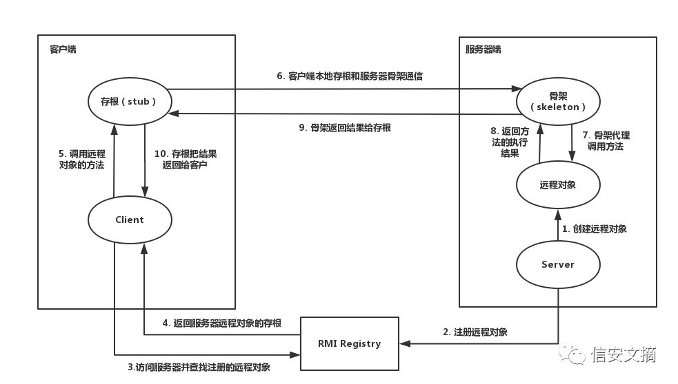 RMI模式中除了有Client与Server,还借助了一个Registry(注册中心)。rmi反序列化攻击就是攻击这个注册中心。