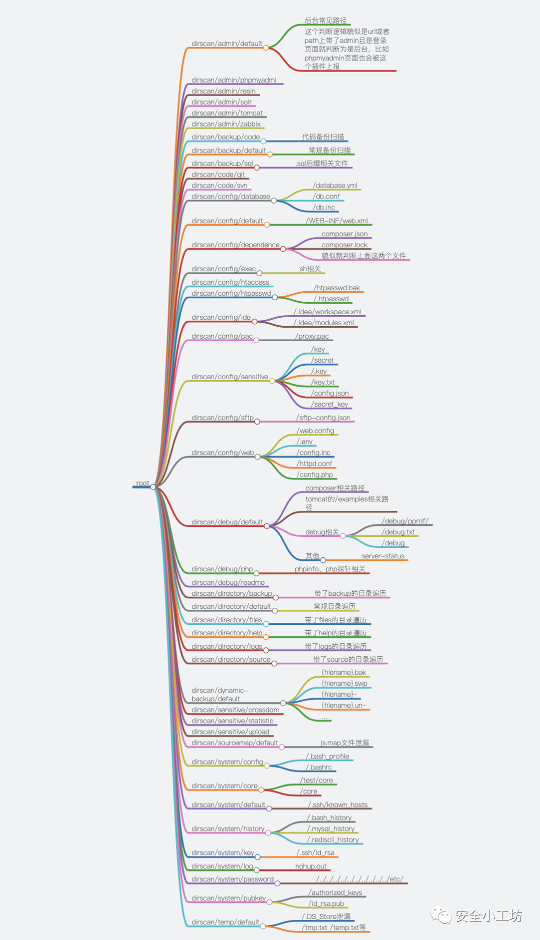 仔细梳理下来,dirscan细分了很多类,其实有些是相似的,可以合并到一起,分成两级其实更简洁明了。