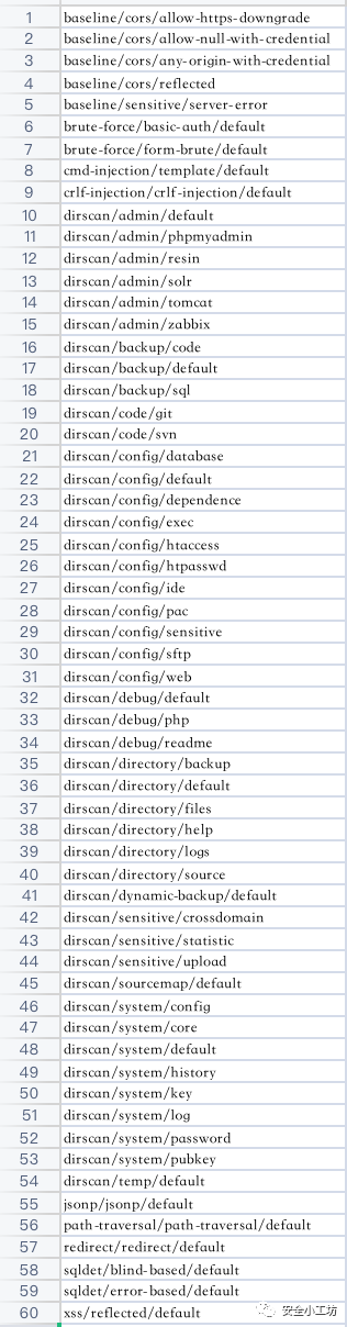 感觉xray花了大量精力来做这个插件,直接分了45个小类,漏洞种类它占了四分之三
