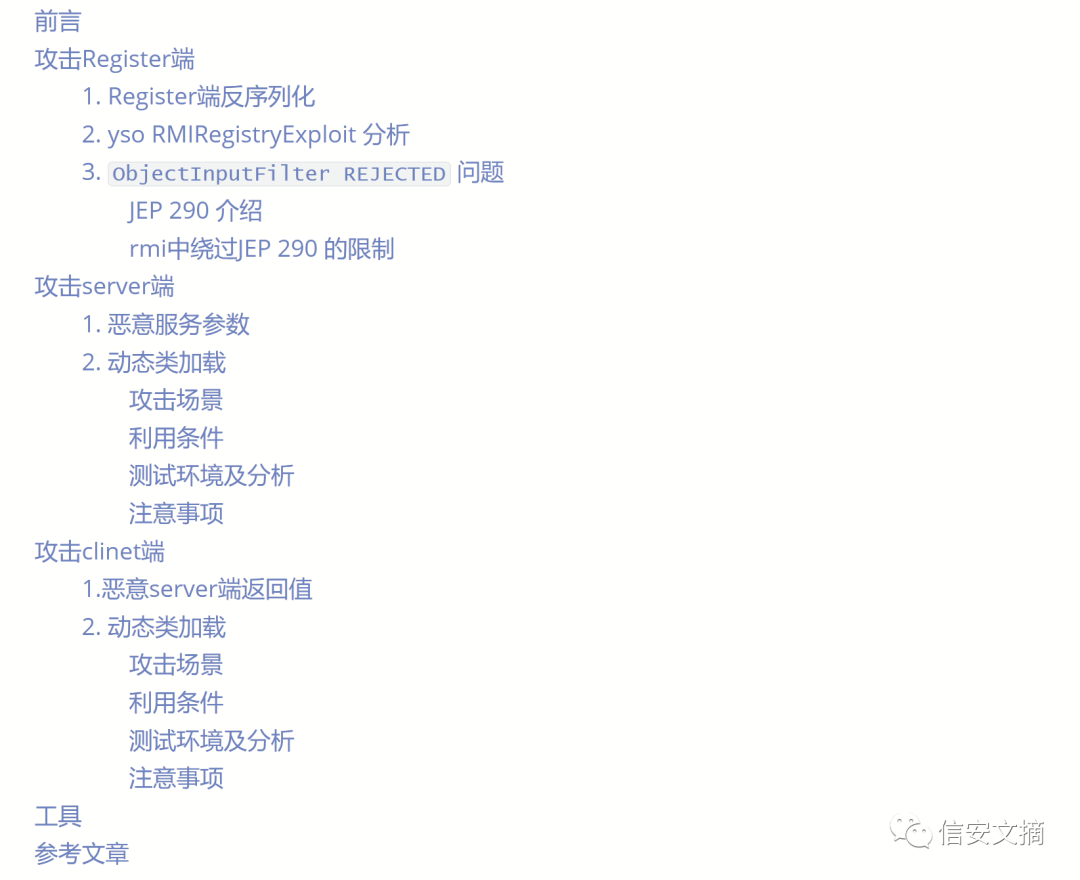 RMI:绕过JEP290——上:https://m0d9.me/2020/07/02/RMI%EF%BC%9A%E7%BB%95%E8%BF%87JEP290%E2%80%94%E2%80%94%E4%B8%8A/