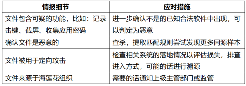 定向性攻击威胁最大的主要是两种:国家级APT攻击和专业黑产的定向勒索,手段上无所不用其极,0day漏洞、社会工程学、供应链渗透等等,专业团队长期持续地紧盯,得逞以后收获也巨大,可能直接导致敏感数据泄露和海量运营数据破坏,进一步导致秘密暴露和业务中断,损失程度远非一般的流行性攻击可比。我们对于大量相关事件的应急响应的经验,当发现失密和勒索时,绝大部分都伴随着内网的完全失陷,所以一旦发现定向攻击的迹象,必须启动包含威胁检测、损失评估、隔离恢复、入侵溯源全部环节在内的完整流程,处置力度与流行性攻击不可同日而语。所以对于攻击者类型的判定非常重要,决定了处置投入的力度,情报需要有专门的维度来给威胁行为体类型给出判定结论。