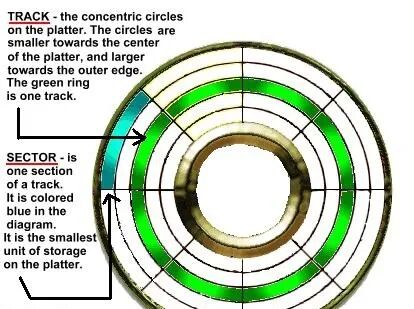 (1)硬盘是由盘面来存储数据的,每个盘面有许多磁道,从外到内编号依次为0,1,2,3...,每个磁道又是由许多个扇区组成的。还可以看看这个视频增加些感性认识:探索电脑硬盘内部的秘密