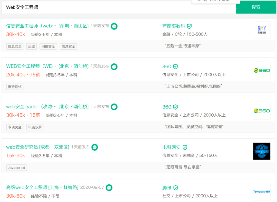 4) 随着互联网的发展,网络安全已经被国家重视起来,接下来的网络安全行业会迎来行业发展的高速时期,作为软件测试,运维或是开发人员由于在日常工作生活当中,黑客攻击可以说是屡见不鲜了,但是因为不了解黑客攻击手段,而无法阻止其攻击行为。那么在这个技能将成为你未来职业道路上的一大助力。