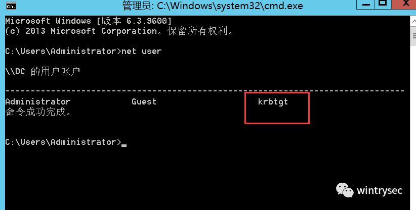 搭建完成,主域控会生成一个krbtgt账号。他是Windows活动目录中使用的客户/服务器认证协议,为通信双方提供双向身份认证。