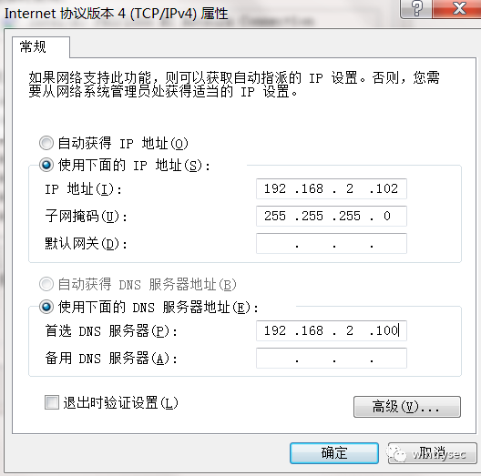 Win7的IP配置如下: