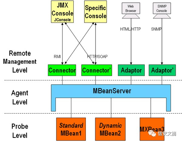 先贴一张JMX的架构图,后面结合代码demo进行讲解。
