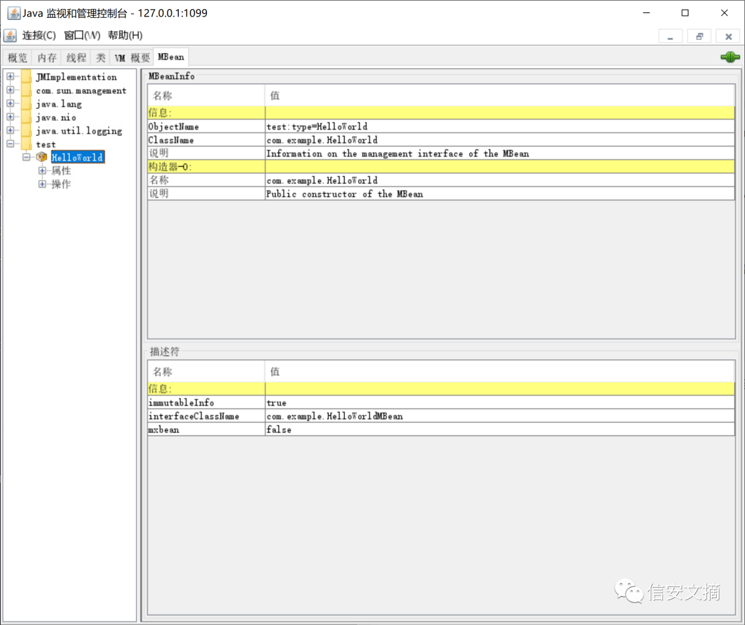 可以用来获取/设置bean属性,或调用方法。存在其他默认的mbean对象实例。