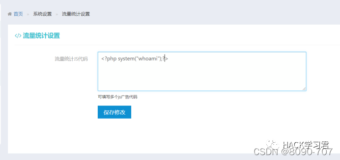 <?phpif (isset($_POST['submit']) && isset($_POST['Statistics'])) {$file = fopen("../JCSQL/Admin/Basic/AdminStatistics.php","w");fwrite($file,$_POST['Statistics']);fclose($file);?><script language="javascript"><!--fwrite($file,$_POST['Statistics']); //值得注意的一段代码