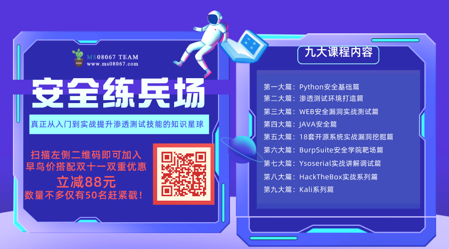 在这里不仅注重夯实基础,更加专注实战提升。不动手,无实战,再多理论基础也是纸上谈兵。渗透测试也好,代码审计也罢,都是从实战中反复打磨而得以提升的。想要技术有所提升,有所突破,多动手多实践可能是唯一真理!