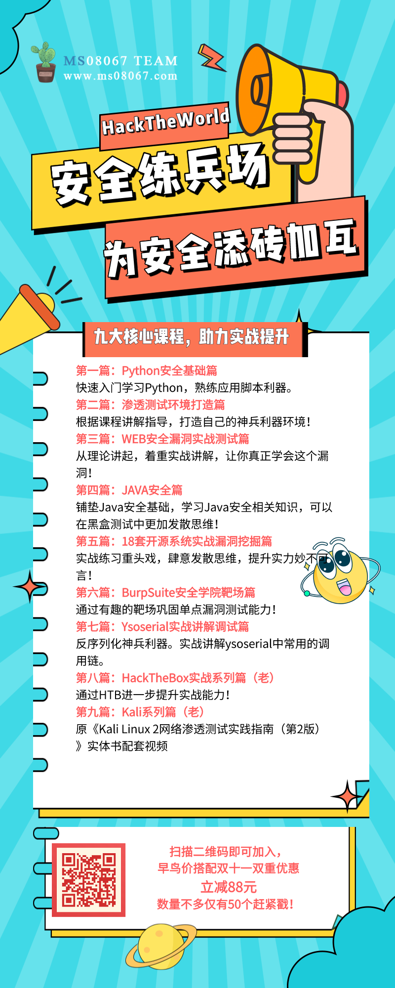学习目的:WEB安全漏洞讲解内容虽然老生常谈,但对于新入坑的朋友确实是不可或缺的一个环节。本系列WEB漏洞实战与常见课程有所不同,这个系列更加专注实践讲解,搭配练习环境,相辅相成,目的是让你真正学会并应用这些漏洞。