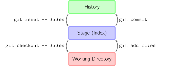 git checkout – files把文件从暂存区域复制到工作目录,用来丢弃本地修改。