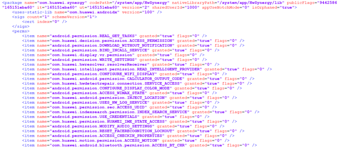 通过上图我们可知,package name=com.huawei.synergy;