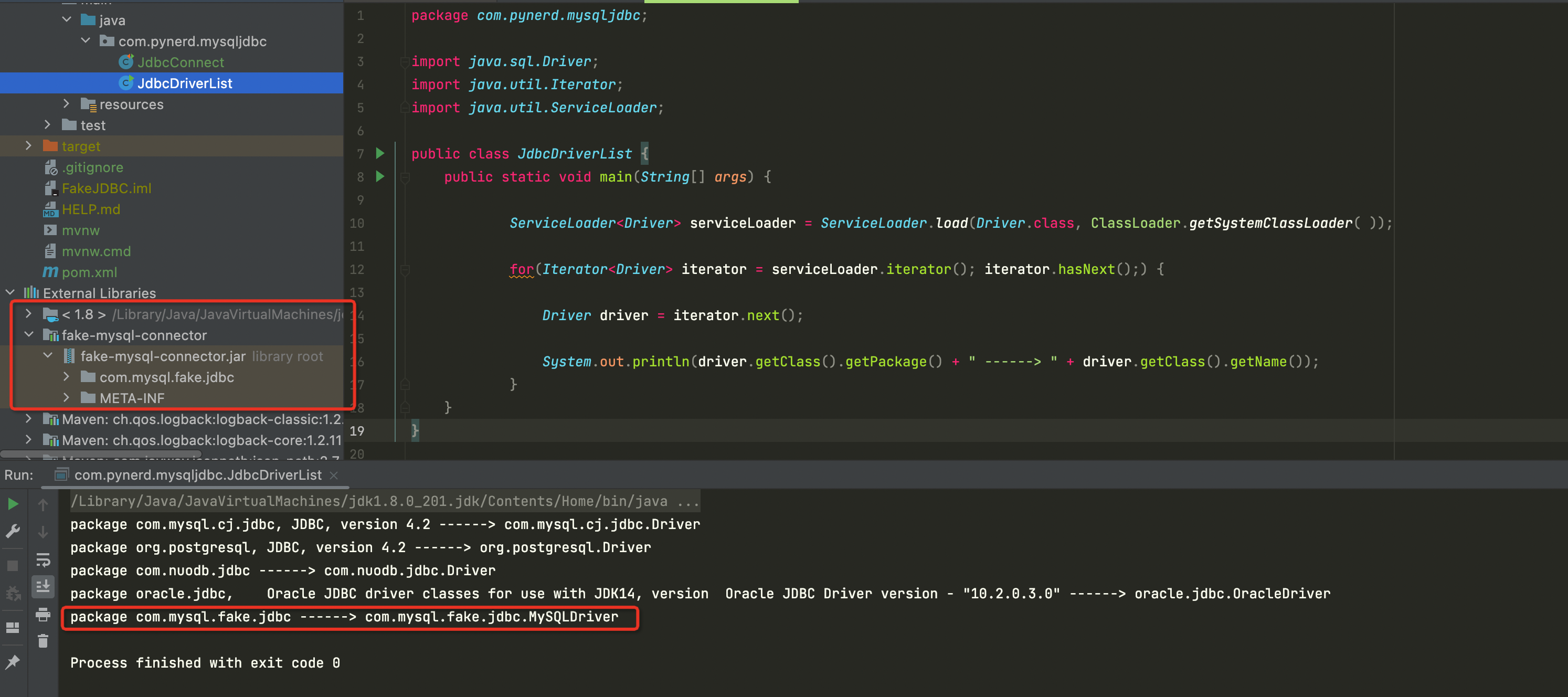 在了解了原理以后,考虑自己去实现一个MySQL JDBC Driver的后门。目的是当用户引入fake MySQL JDBC Driver后,在建立JDBC链接时,触发执行命令,弹出计算器。由于JDBC是通过SPI机制实现的,所以不需要用户指定JDBC驱动,就可以自动加载后门驱动。