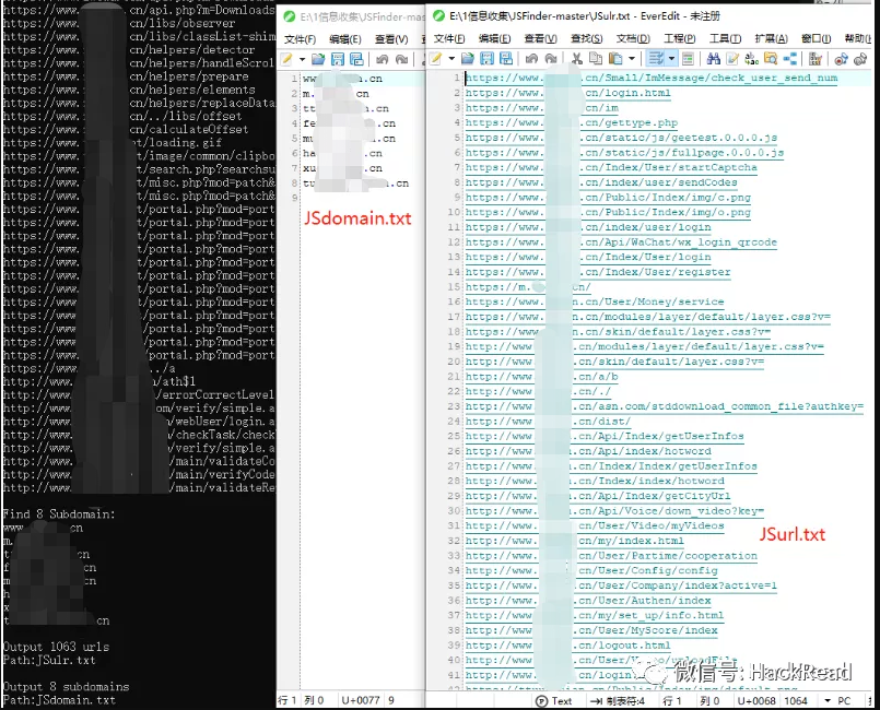 运行结束后生会成两个txt文本, JSurl.txt为URL里面会有一些接口什么的,