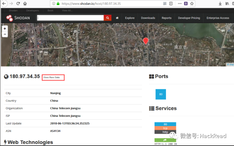 这里要用到一个之前没注意到的东西,就是Shodan的原始数据(Raw Data)功能