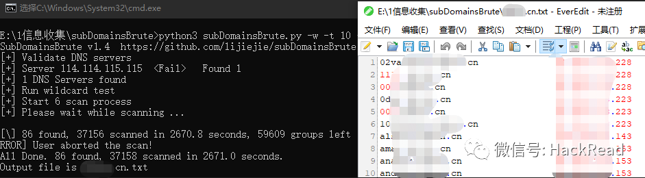 python subDomainsBrute.py -t 10 xxx.cn -o xxx.cn.txt
