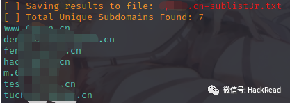 python sublist3r.py -d 6pian.cn -o xxx.cn-sublist3r.txt