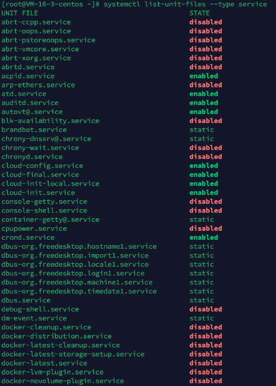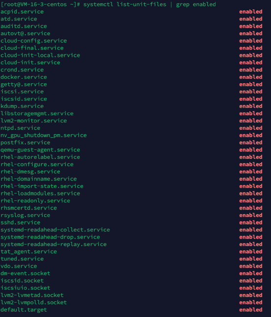 Centos7 查看自启动列表systemctl list-unit-files以及设置服务自启动