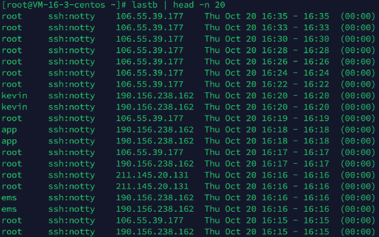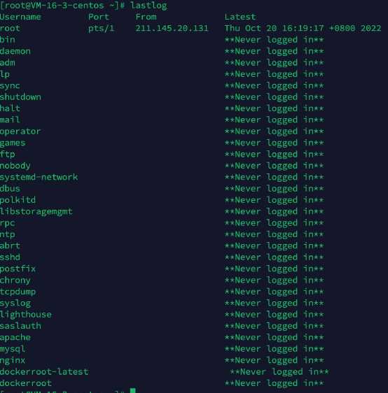 /var/log/lastlog 登录的账号,也可以使用命令 lastlog 查看