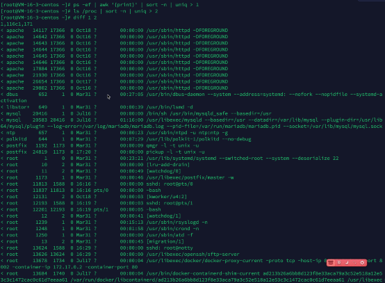 ps -ef | awk '{print}' | sort -n | uniq > 1
