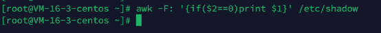 空口令账号:awk -F: '{if($2==0)print $1}' /etc/shadow