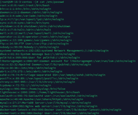 可登录账户:cat /etc/passwd | grep '/bin/bash'