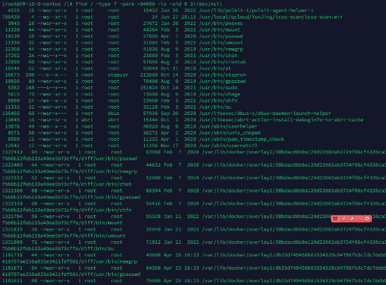 SUID 程序排查:find / -type f -perm -04000 -ls -uid 0 2>/dev/null