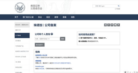 “埃德加数据库”(Electronic Data Gathering, Analysis, and Retrieval System,简称EDGAR)是美国证监会指定的美股上市企业信息披露平台,该数据库地址位于美国证监会官网,收录了所有美股上市公司的重要信息,包括定期财务报告、招股说明书、临时公告、重大事件等。