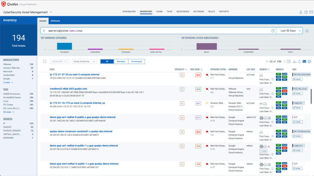 The first step in managing this critical vulnerability and reducing risk is the identification of all assets running Linux OS. Qualys CyberSecurity Asset Management makes it easy to identify such assets.