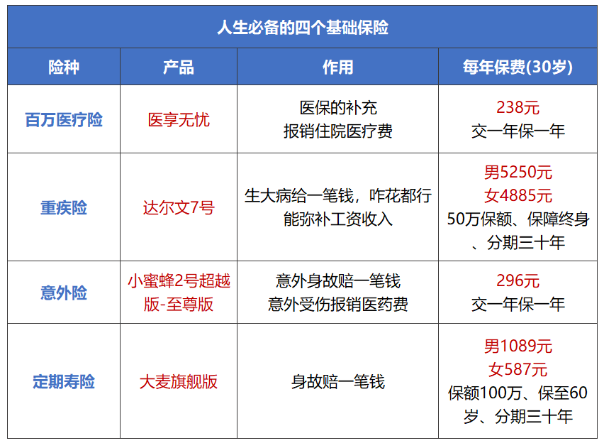 小到赌球,大到炒股,日常生活,都逃不开这一个底层逻辑。阿根廷对沙特那一场,印象中赔率不高,1.3倍左右,下阿根廷赢了能赚30%。大多数情况下,重注下强队是一件公认稳赢的事情,因为爆冷是极小概率事件。但阿根廷对沙特那场,阿根廷就是爆冷门输掉了,谁能想到呢?我相信肯定也有很多人,遇到过这种“不在预期内的亏损”。“不在预期内的亏损”之所以杀伤力大,就是因为它的“不在预期”。换一种局面,如果提前想到阿根廷会输的可能性,可能都不会买这么多,也就不会亏这么多。你看到一个确定性很强的逻辑,你觉得明天一定会涨,甚至没想过不涨的可能,于是重仓买进,还加杠杆。这两年听到的最多悲剧,就是房贷断供,被法院收回拍卖。互联网行业上升期时,很多人买房使劲加杠杆,十万月薪敢背九万房贷,反正工资总会涨,高杠杆的风险,会在工资上涨的过程中一点点被消化掉。但这两年,他们就是失业了,没收入了,房贷还不上了,房子被法院没收了。这些不在预期内的风险,不在预期内的小概率事件,统统都成为现实,给了生活一锤重击。所以对普通人来说,如何应对不在预期内的风险,如何增强风险抵抗力,决定了你的生活下限在哪,再差能有多差。如果是一个上班族,收入纯靠工资,那你就要想,如果失业了,还有其他的现金流吗?能覆盖每月的基础支出吗?最长能撑多久?什么时候能找到第二个工作?那你的储蓄能撑多久?够看病吗?够三五年的生活费吗?这里头有些不确定性我们把握不住,比如什么时候会失业,什么时候能找到下一份工作,但有一些风险可以,比如现金流断裂,比如生病后没有收入。我认为现代社会以来,最好的风控工具就是保险,对普通人最友好的风控工具,也是保险。提到车险就都懂,保险它能预防的,就是那个万一,甚至是压倒骆驼的、难以承受的万一。一年最多上万块就能买到全套保障,且没门槛,适用于多数家庭。我自己常配的是百万医疗险+重疾险+意外险+定期寿险。医保应付日常小病没问题,但遇上癌症这些大病不够看。一是报销有封顶线,二是医保分甲乙丙三类,医保只能报销甲乙类,丙类纯自费,这些医保不报销的钱,都要自己出。但有百万医疗险,就能报销其中的住院费,解决掉大头。这笔钱主要解决生病失业期间,没收入的问题。可以当生活费、还车贷房贷、供家庭支出等。另外,如果碰上效果好的癌症特效药,但医保不报销,也能用这笔钱买。意外险是意外身故/伤残后,直接给一笔钱,咋花都行。它能解决两个风险,一是出意外后没去世,但人残了,多少还有笔钱生活。定期寿险是身故后,直接给一笔钱,不管什么原因身故都行,包括猝死、意外、病死等等(自杀除外)。这相当于意外险的补丁。毕竟除了意外,人身故的方式多种多样。这四类保险加起来,能兜住生活里的大部分风险,再坏的情况发生时,都下有底线,不怕生活被击穿。也不用成为保险专家,只需要把我上面说的搞明白,每个保险什么时候用、能赔多少钱、怎么赔,有个大概的了解就行。然后找个你信得过的人,按ta说的买,每类保险买一个性价比较高的产品,就完事了。我自认是一个对保险很有研究的人,平时没事都会钻研,挖掘一些价格不贵、但保障很好的产品。![]()