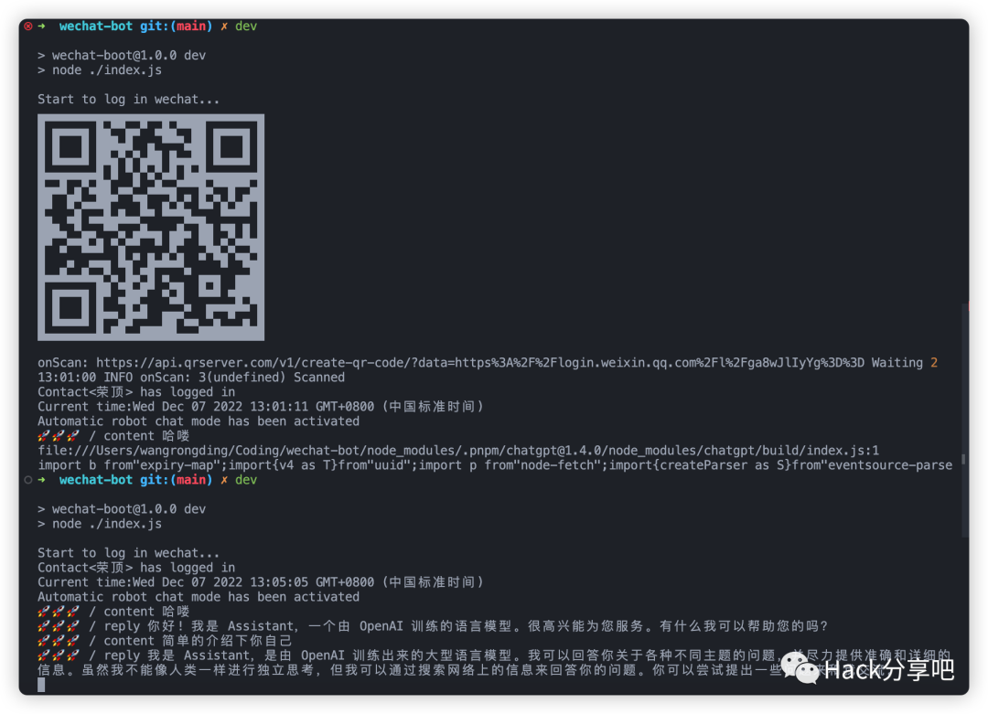 4. 启动服务,就可以扫码登录,然后根据你的需求,自己修改 index.js 文件。