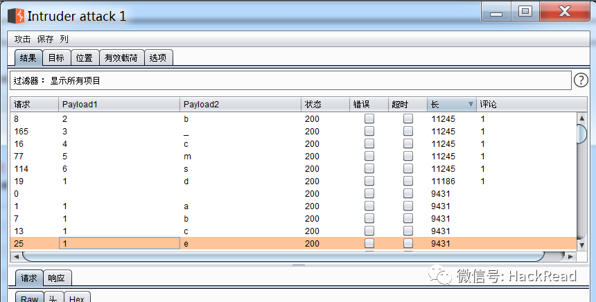 尝试用burpsuite的clusterboom模式对database进行爆破