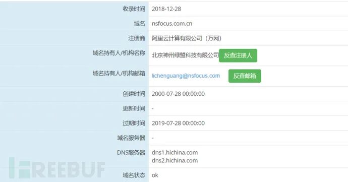 根据已知域名反查,分析出此域名的注册人、邮箱、电话等