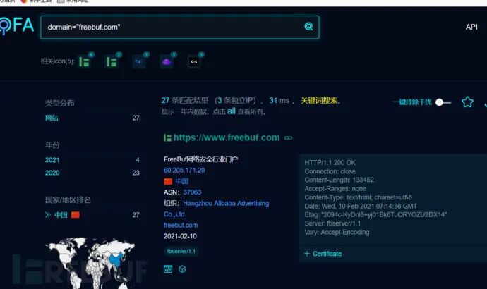 钟馗之眼 site=域名即可 https://www.zoomeye.org/