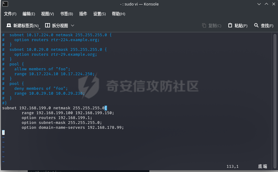 sudo vi /etc/dhcp/dhcpd.conf