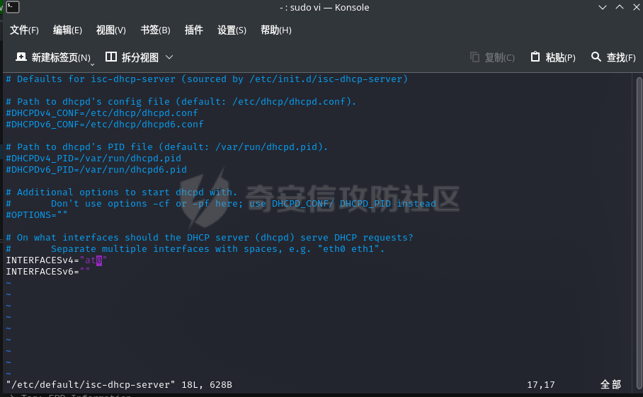 将其中的INTERFACESv4=""更改为INTERFACESv4="at0"