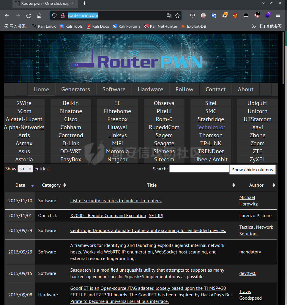当routersploit无法胜任时,还有一个汇总各大路由器漏洞的网站:http://routerpwn.com/