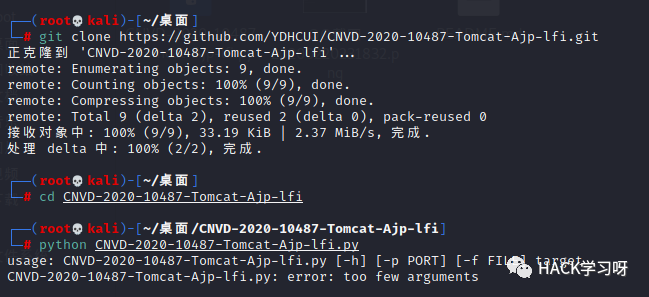git clone https://github.com/YDHCUI/CNVD-2020-10487-Tomcat-Ajp-lficd CNVD-2020-10487-Tomcat-Ajp-lfipython CNVD-2020-10487-Tomcat-Ajp-lfi.py #py2环境