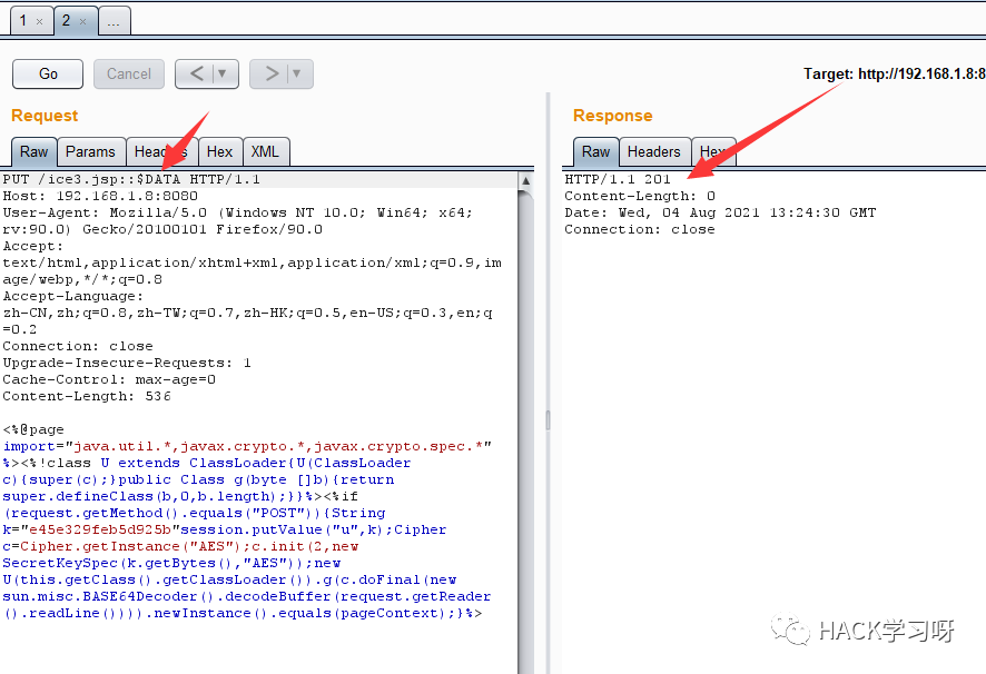 %20绕过。我们知道%20对应的是空格,在windows中若文件这里在jsp后面添加%20即可达到自动抹去空格的效果。这里看到返回201已经上传成功了/,因为/在文件名中是非法的,在windows和linux中都会自动去除。根据这个特性,上传/ice1.jsp/,看到返回201::$DATA,看到返回201,上传成功javax.servlet.include.request_urijavax.servlet.include.path_infojavax.servlet.include.servlet_path