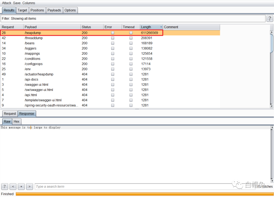 spring boot 1.x 版本 heapdump 查询结果,最终结果存储在 java.util.Hashtable$Entry 实例的键值对中