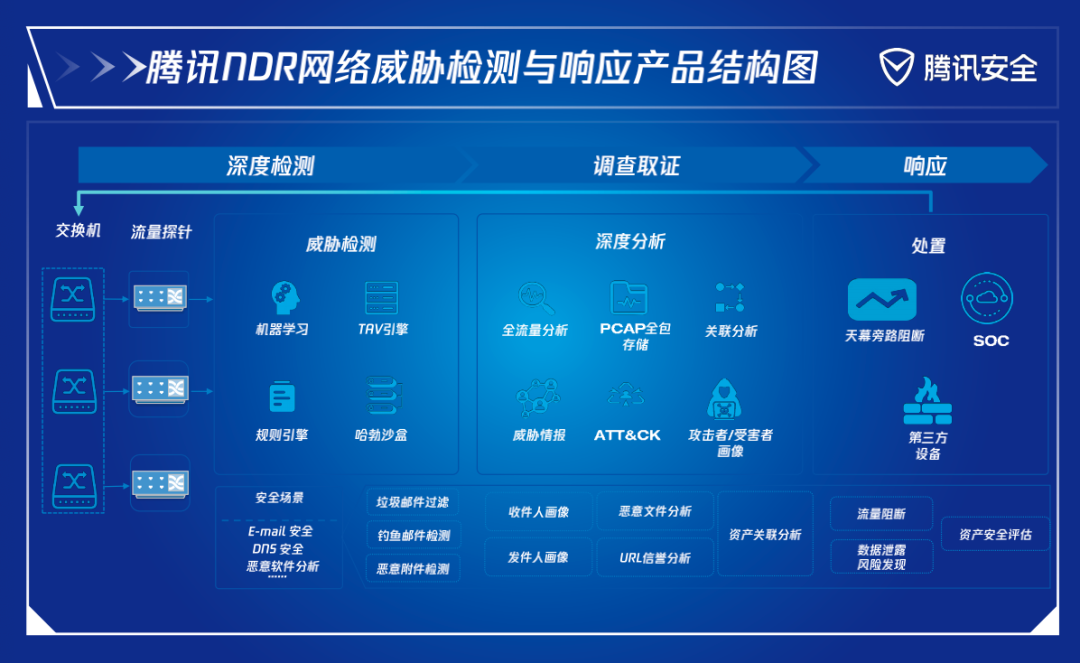 未来,腾讯安全还将继续结合自身二十多年黑灰产实战经验和安全实验室顶尖的技术能力,持续投入研发,不断创新升级NDR产品,助力客户实现高级威胁检测、分析、溯源、响应一体化解决方案,连同生态合作伙伴一道共同守护网络安全。
