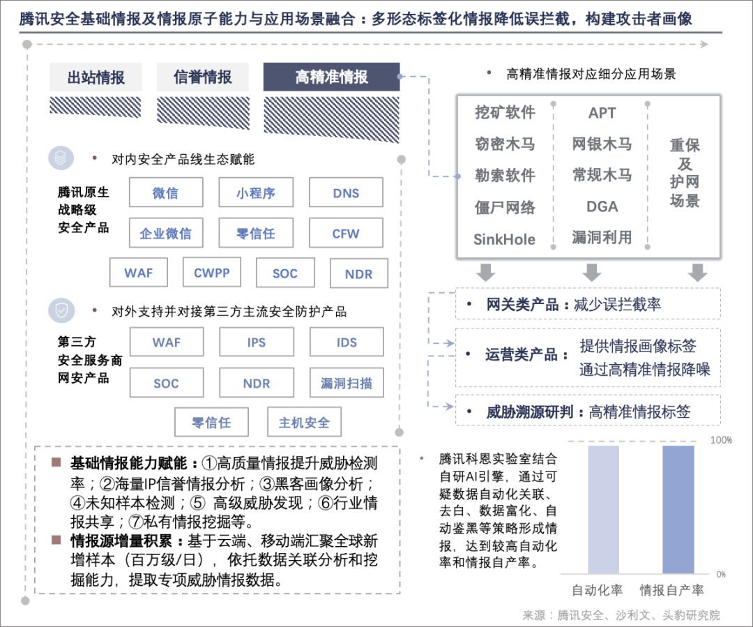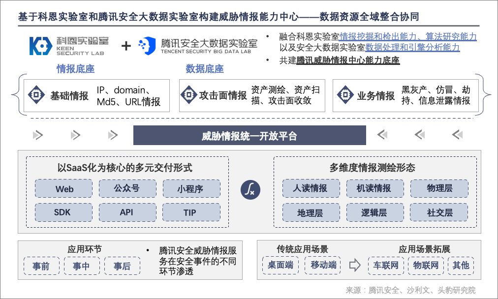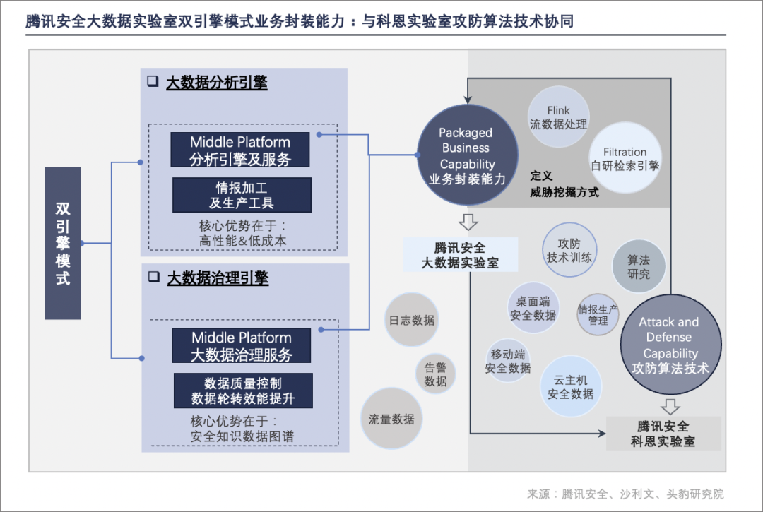 ①在大数据分析方面,腾讯安全利用大数据分析引擎实现威胁情报关联分析、深度分析,并提升情报加工和生成效率;